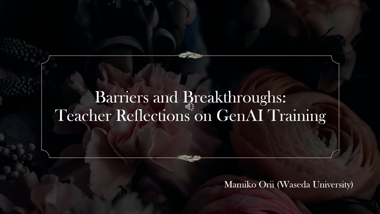 This presentation examines how targeted Generative AI (GenAI) teacher training influences EFL teachers’ instructional intentions and pedagogical perceptions. GenAI is gaining traction as an instructional tool in English education, particularly for its ability to support vocabulary, phrasing, and inquiry-based learning (Kaya, 2023; Moorehouse, 2024; Yoshida, 2024). However, surveys show that many teachers have been slow to adopt it and remain concerned. In Japan, usage remains limited. Saito (2024) reported just 19.3% adoption among junior high teachers, while the HelloWorld Survey (2025) found 60% of English teachers lacked experience and concerns about integration. The author's upcoming study found the top concern—shared by 23 of 25 teachers—was insufficient training and support. International research also reports low adoption and persistent barriers, including insufficient training (e.g., Collie & Martin, 2025; Xiao et al., 2025). These findings highlight the need for training to help teachers use GenAI effectively. A two-part GenAI training course was held in Tokyo for 33 elementary and junior high school teachers. Focused on speaking instruction—‘presentation’ in the first session, ‘interaction’ in the second—it included hands-on exploration of GenAI's functions, classroom-ready prompts, and practical applications. Post-training surveys posed two open-ended questions: “What did you learn?” and “How would you like to apply it?” Responses were thematically analyzed, revealing teachers deepened their understanding of GenAI's instructional potential—particularly in prompt design and feedback—and showed intent to apply it thoughtfully. These results underscore the value of targeted training in building teacher confidence and promoting pedagogically sound integration of GenAI.